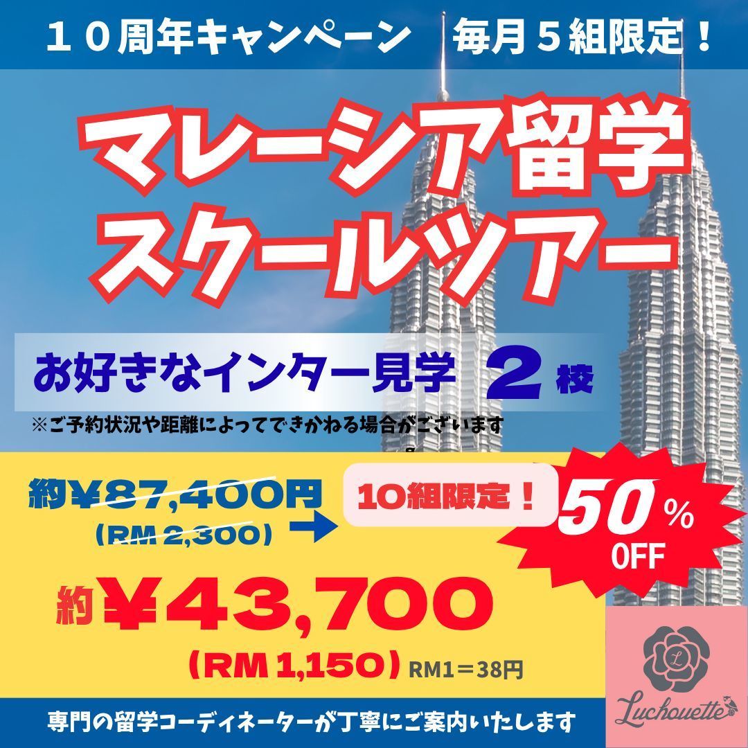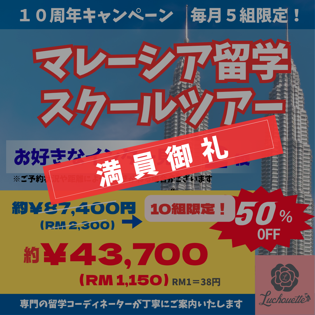 マレーシアへの母子留学やインターナショナルスクールへのご入学といったマレーシア教育移住全般、オンラインレッスン、スポーツ留学、ホームステイ、不動産の賃貸・売買、マレーシア大学進学・語学学校、マレーシアへの進出・起業、マレーシア海外就職等のご相談ならルシュエットへ。