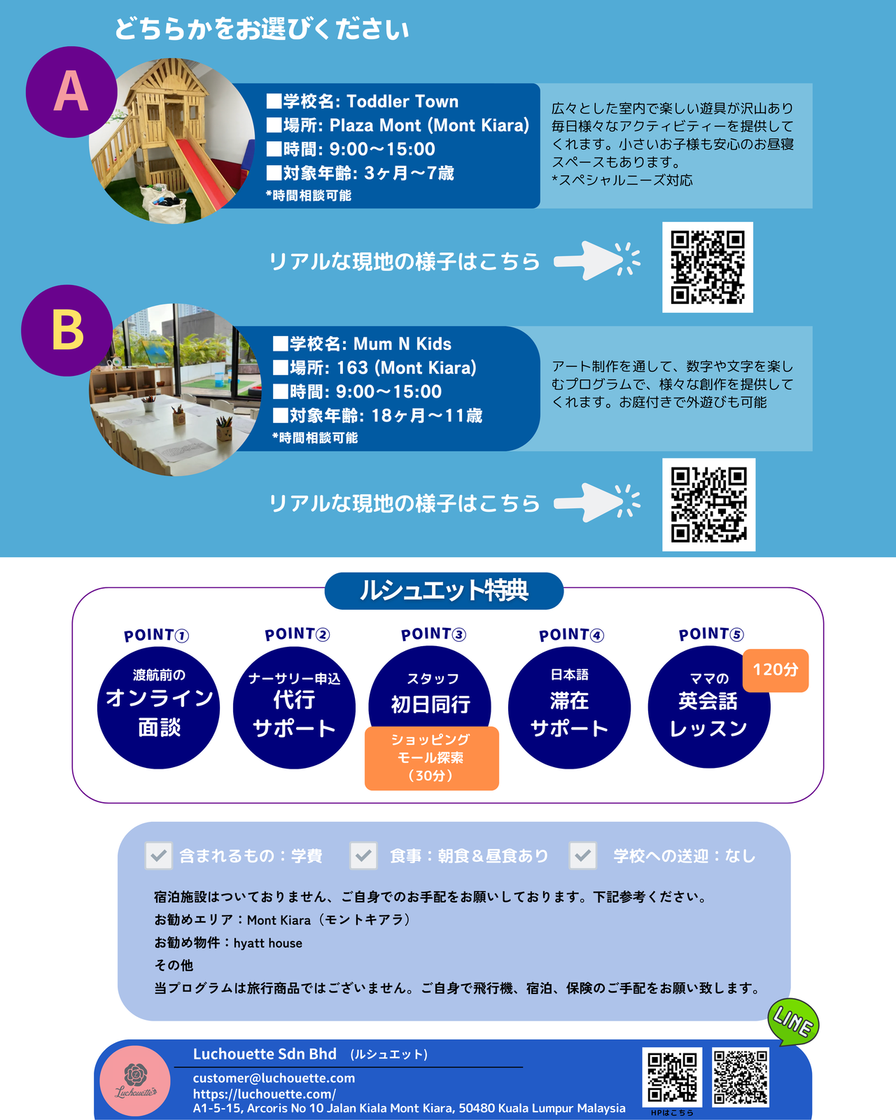 ルシュエットのマレーシア親子留学プログラムにご興味をお持ちの方は、ぜひお気軽にお問合せ・ご相談ください。