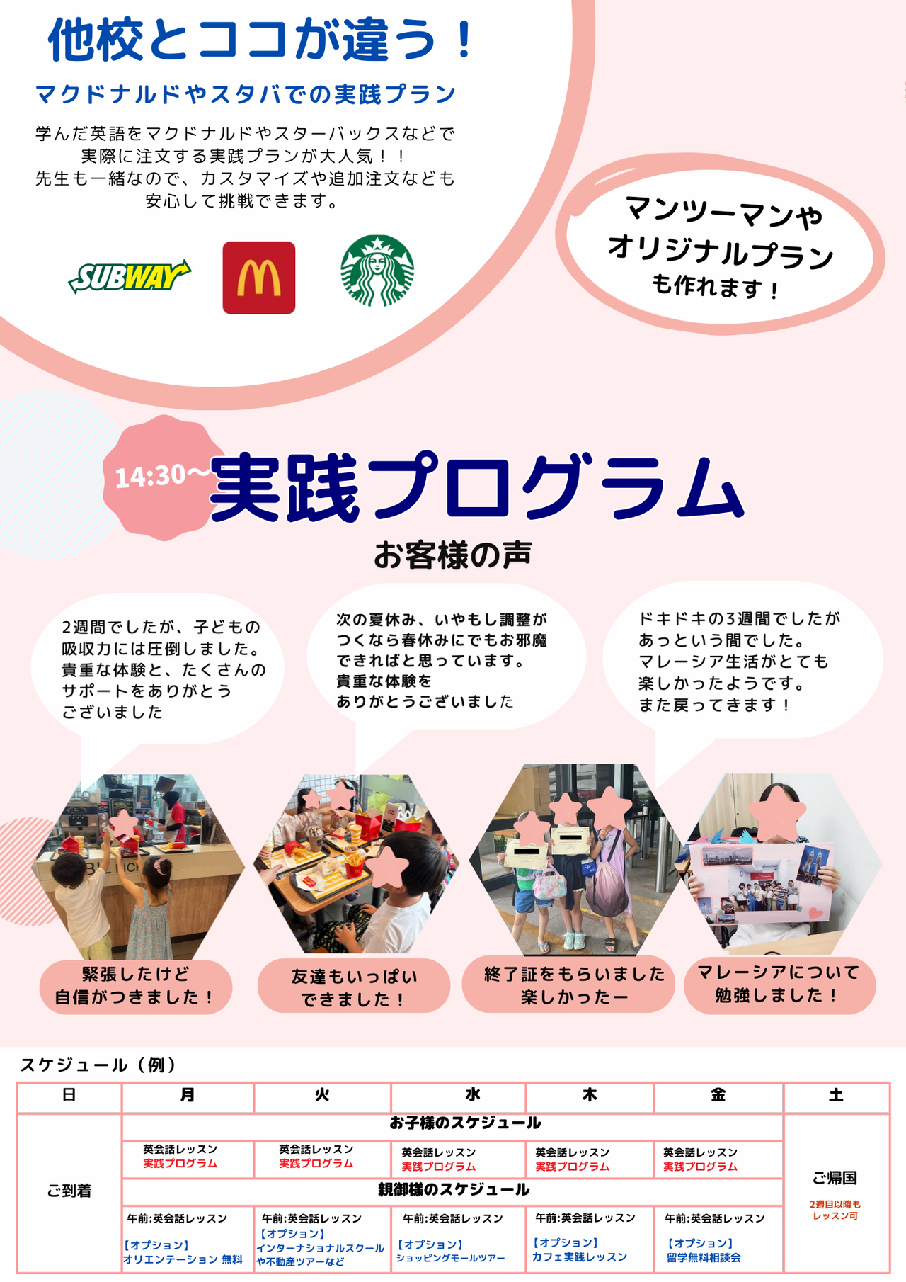 このように、当社の親子留学プログラムでは、初めてのマレーシア渡航でも安心して参加していただくことが出来ます。弊社の留学カウンセラーがお客様お一人おひとりの目的・目標やご希望に合った形でプランのご提案をさせていただきます。