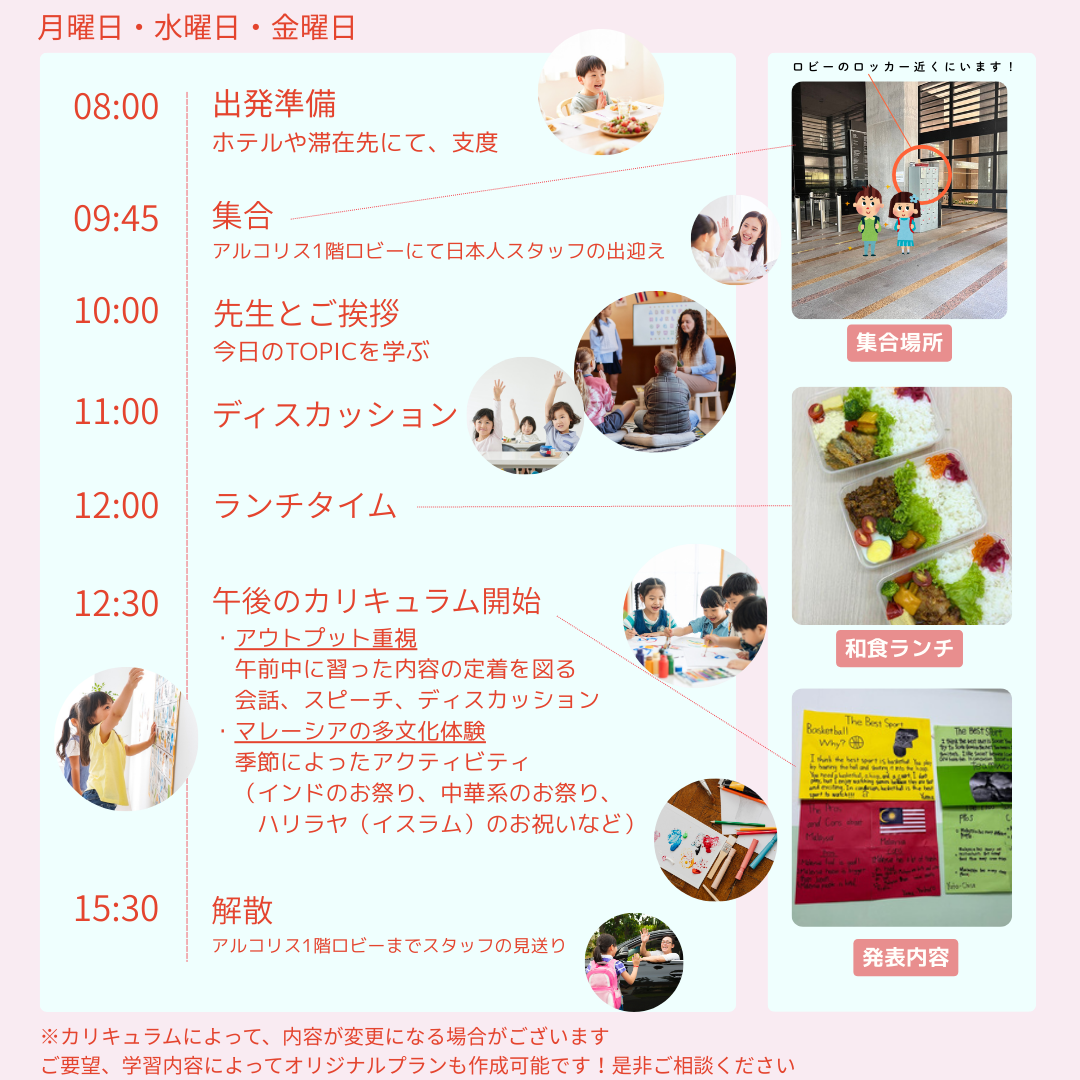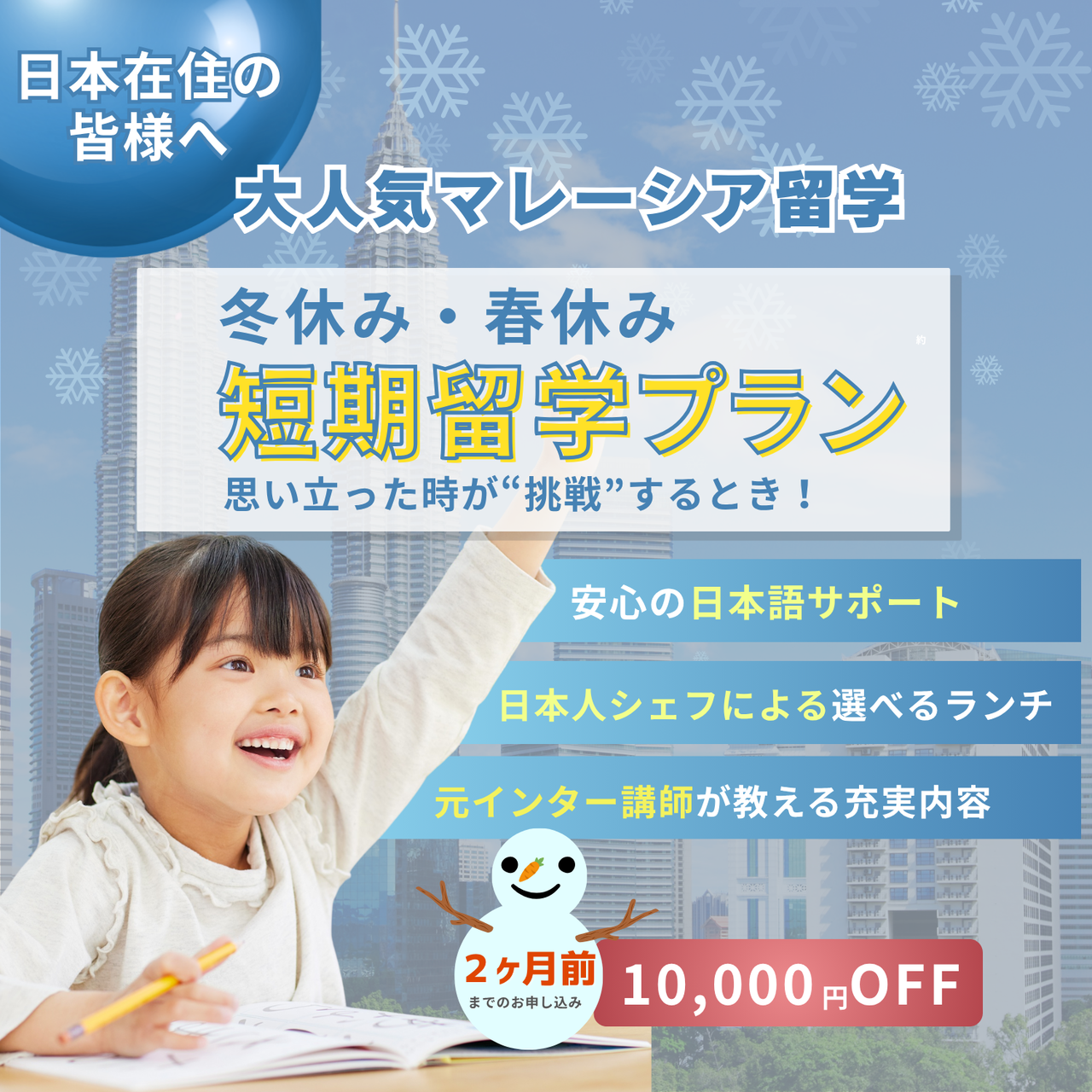 という親御様からのご相談も多くいただきますが、お子様の順応性は高く、帰国する頃には英語の歌が唱えたりと、楽しく英語を学ぶ環境がマレーシアには揃っているといえます。