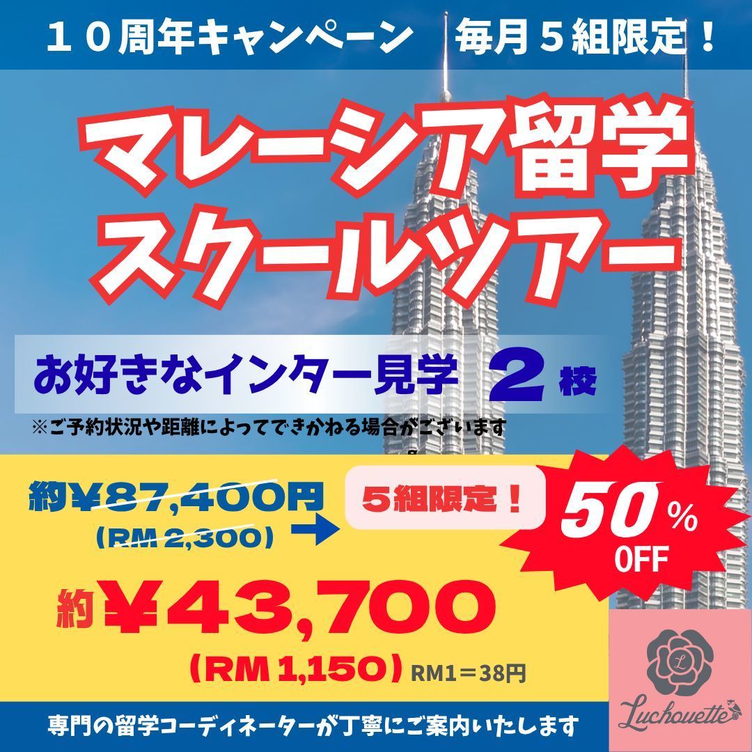 マレーシア留学スクールツアーを毎月5組限定でご案内